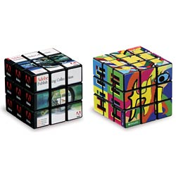 We print any color text or graphic artwork on Rubik's Cubes. We can make any custom Rubik's Cube puzzles with your own colors, printing, and messages. Call or e-mail us today. Fast turnaround time is available on most standard Rubik's Cubes puzzle orders. Our minimum order for custom printed Rubik's Cubes is 50 pieces. Custom color imprinting is available with our stock Rubik's Cubes. We can imprint these with your logo's on the white side of the cube, as illustrated in the pictures below. Full color photo customization is available on all 6 sides for orders with a minimum of 100 pieces. The full color customization is illustrated in the pictures above. This unique specialty promotional item can be used for any creative advertising or marketing project. Wholesale, Retail programs, and custom packaging options are also available.