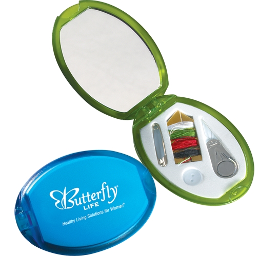 We provide wholesale and custom printed highest quality Sewing Kits with your company logo or branding. Ideal for promotional or giveaway items. We offer a variety of options beyond just the traditional sewing kit pictured above. Popular models include a built in mirror or brush to make an even more stylish and functional item. This unique specialty promotional item can be used for any creative promotional advertising or marketing project. Minimum order is 150 pieces. Contact us today! On the road or around the home, these handsomely constructed, attractive sewing kits, will carry your name or message in fine style on its clear, plastic lid. Available in a variety of colors and customizeable for your promotional needs. Contact us today!